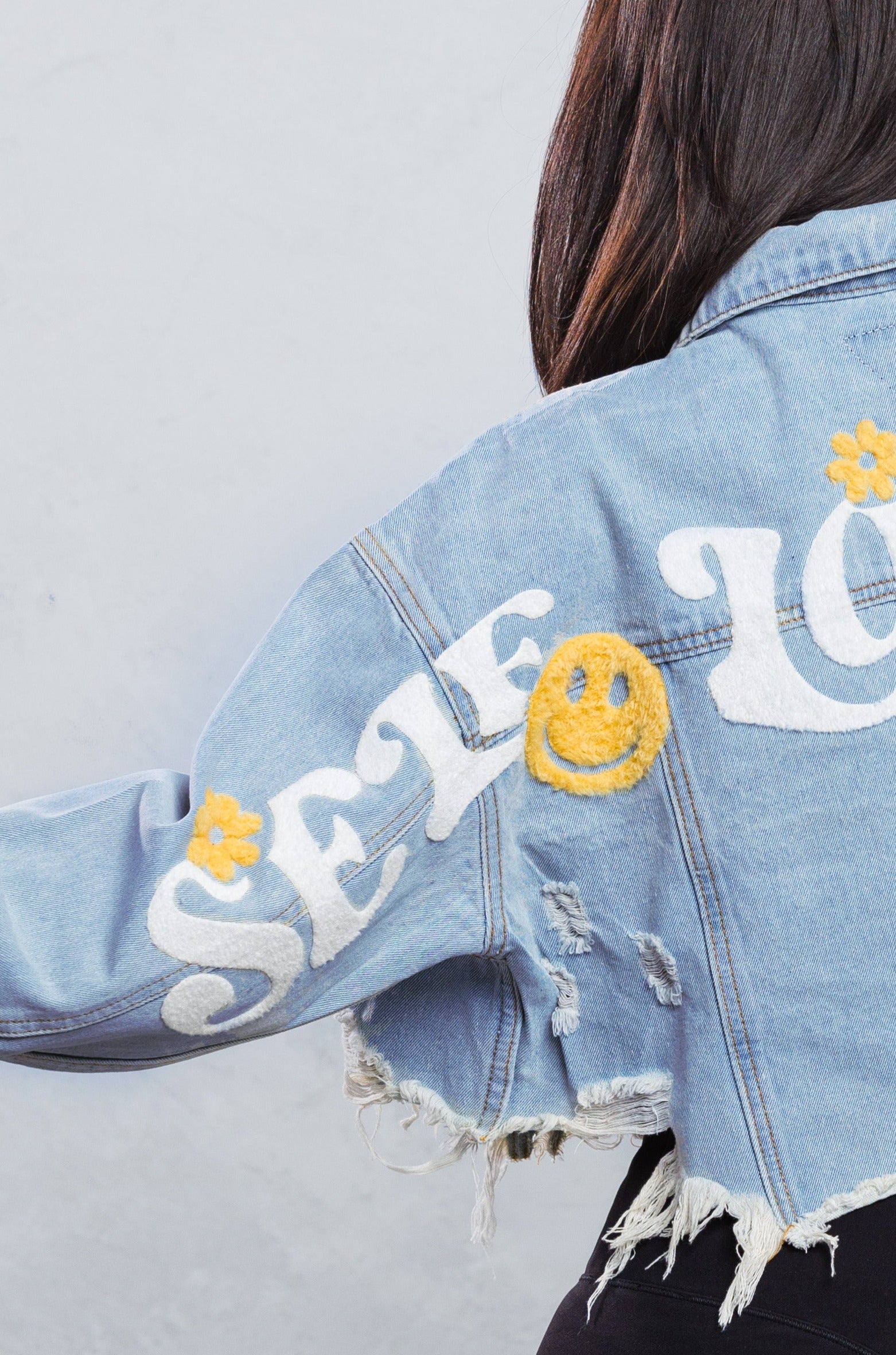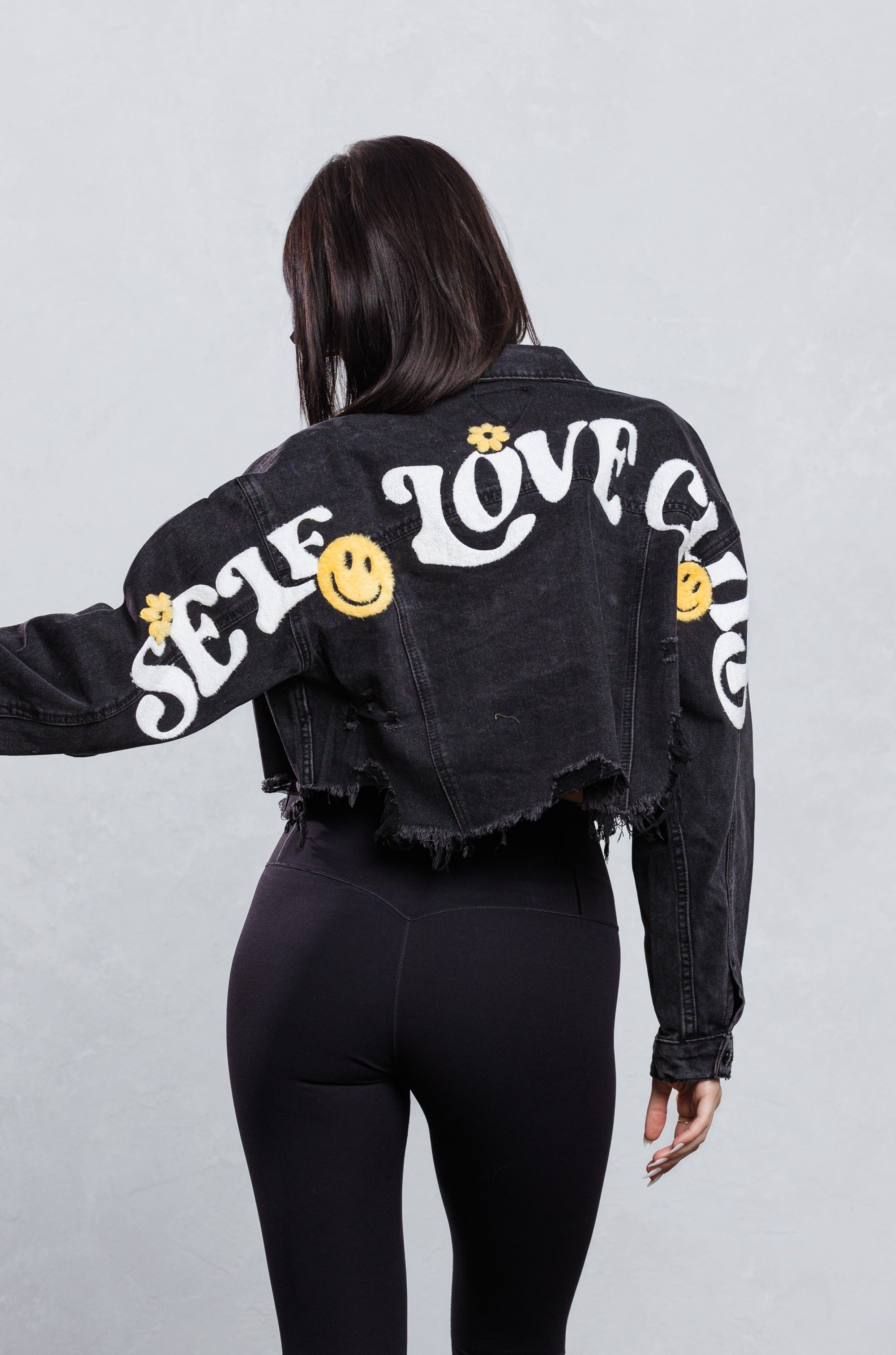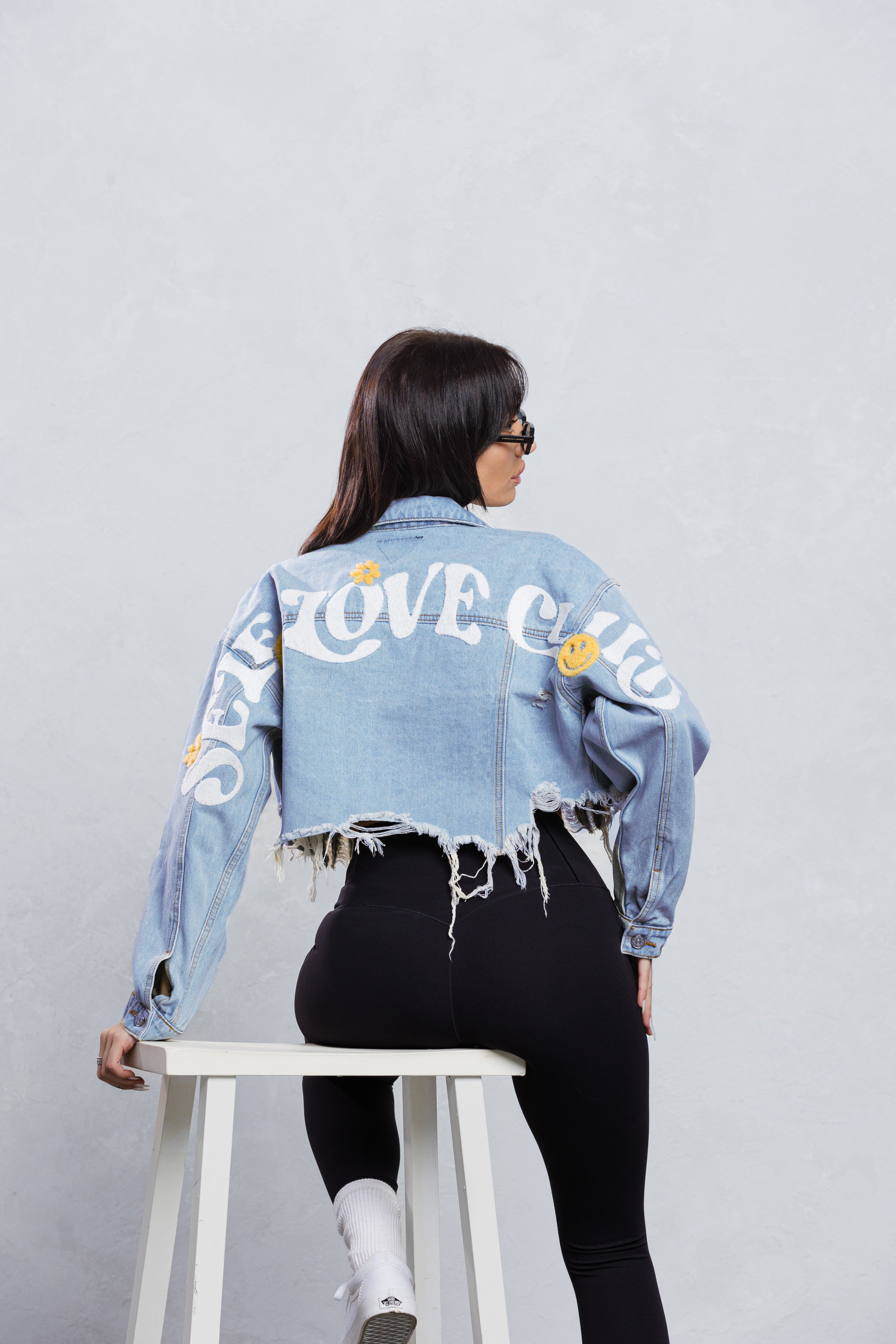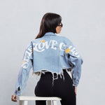 SELF LOVE CLUB Crop Denim Jacket