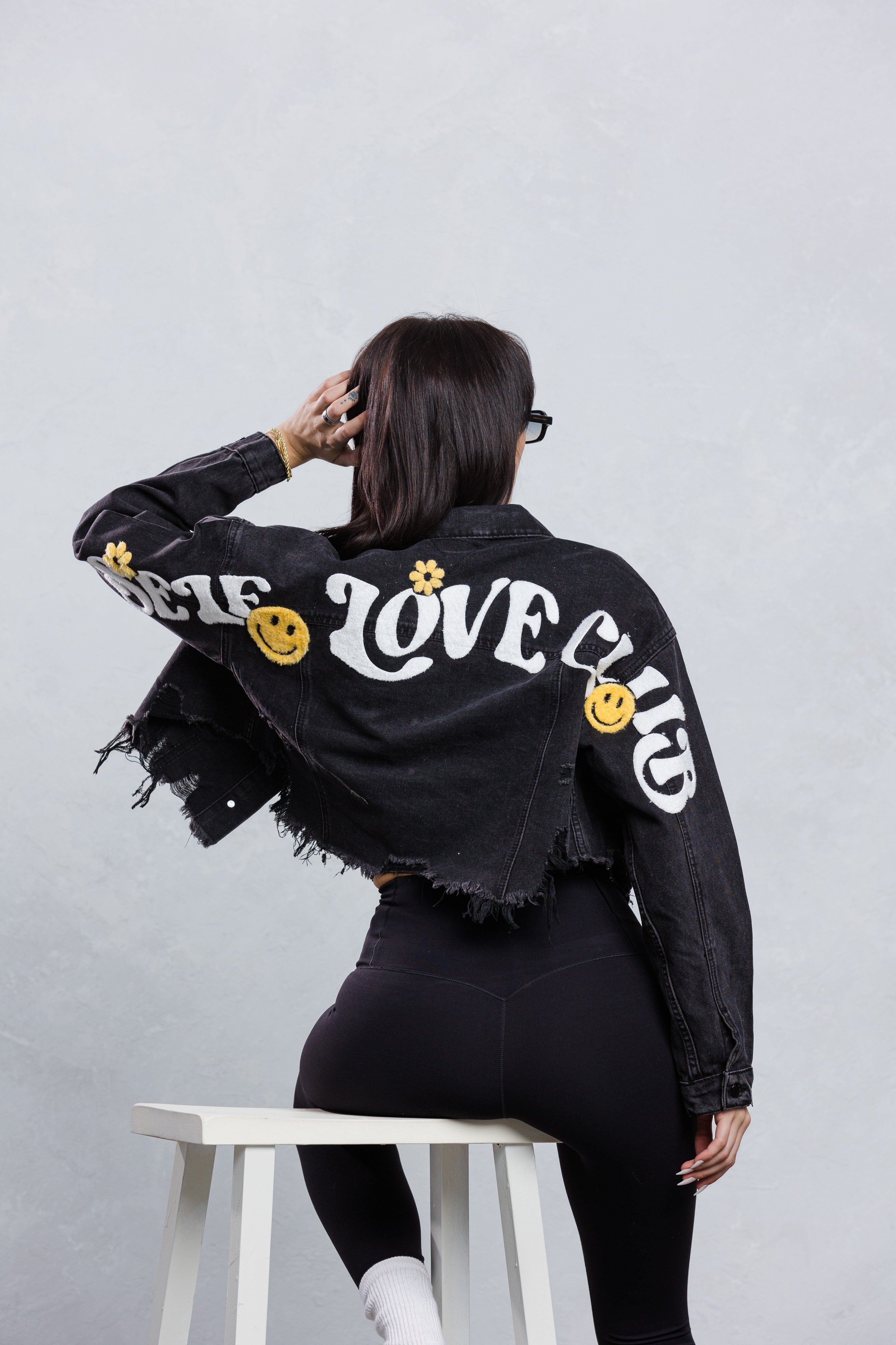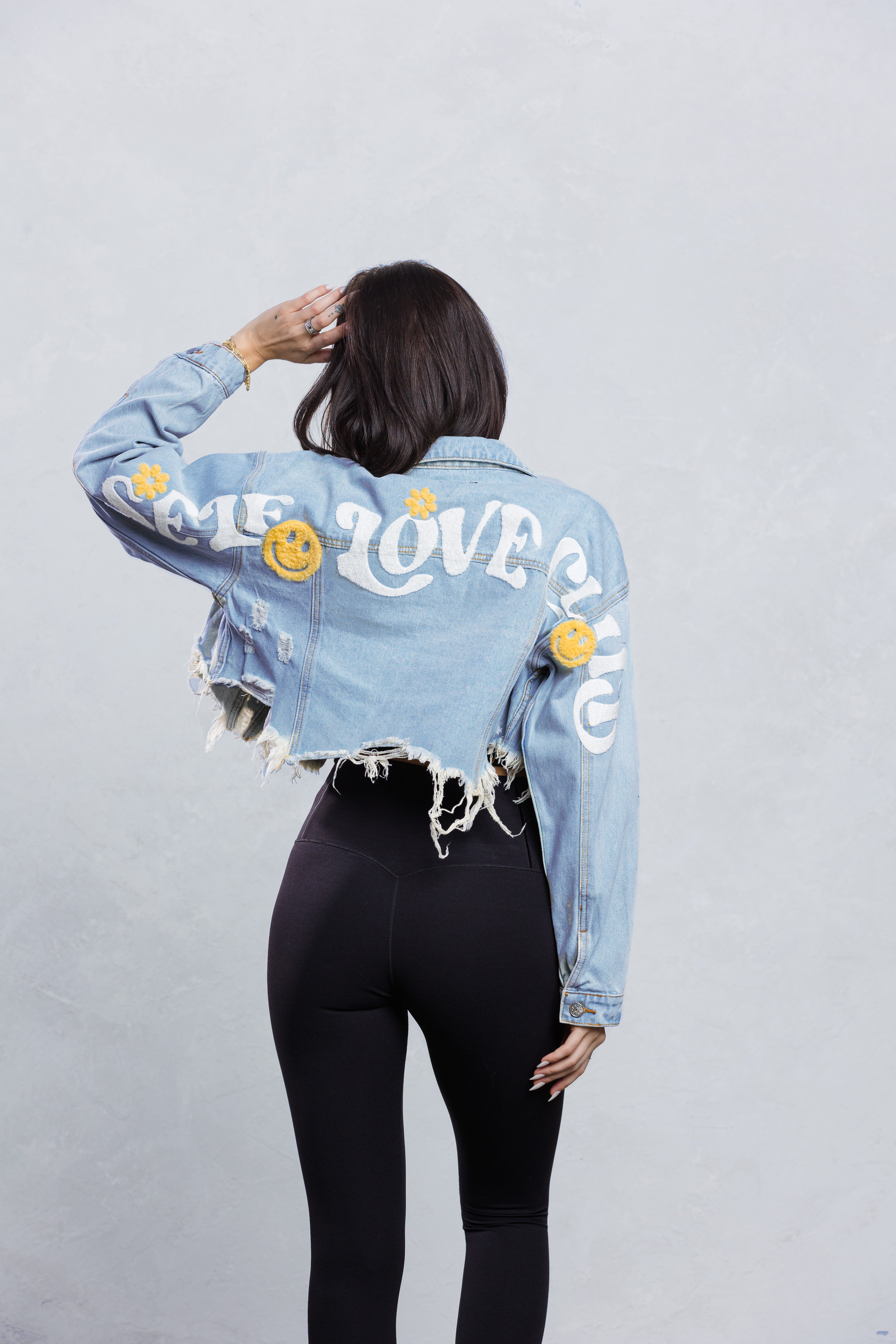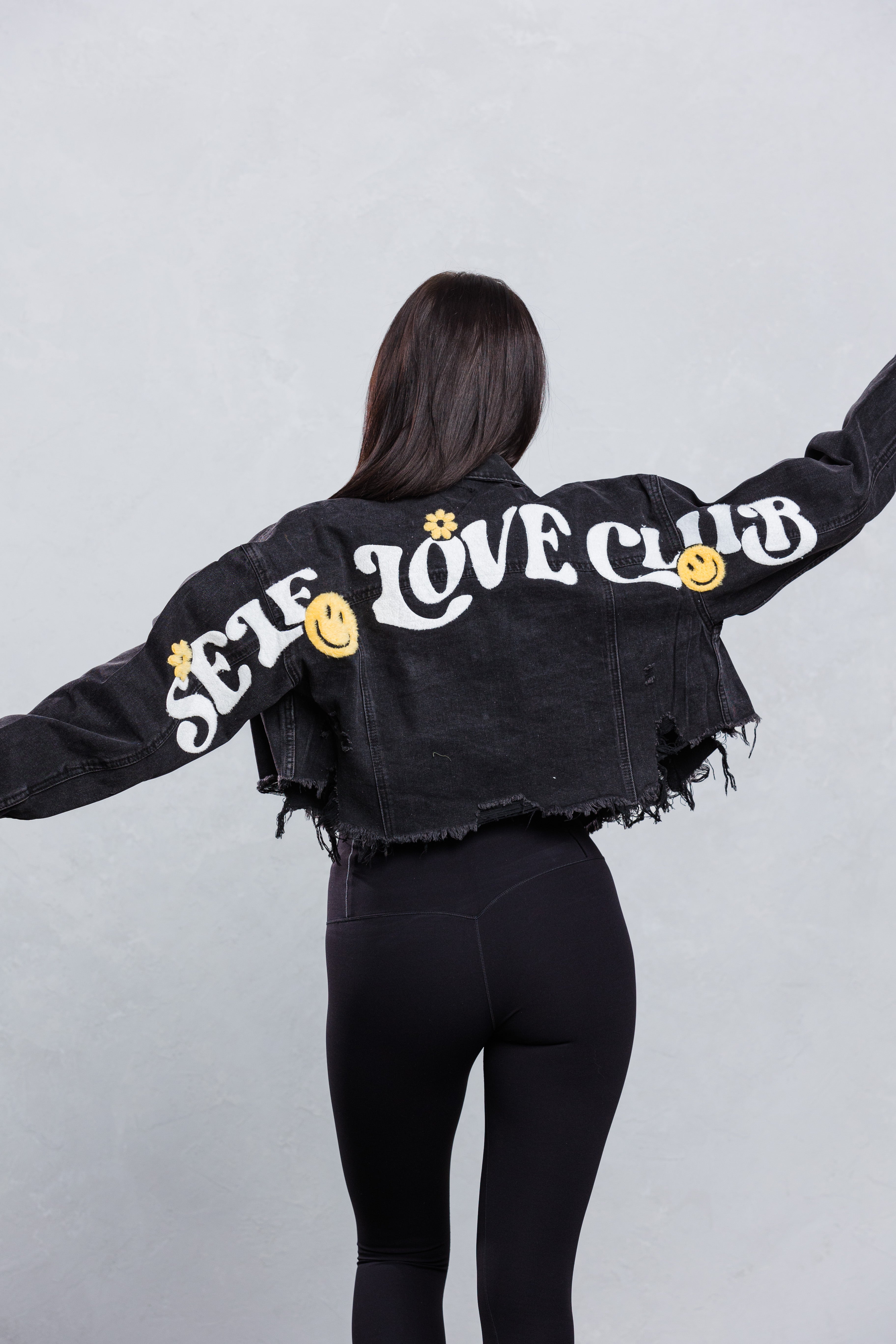 SELF LOVE CLUB Crop Denim Jacket