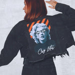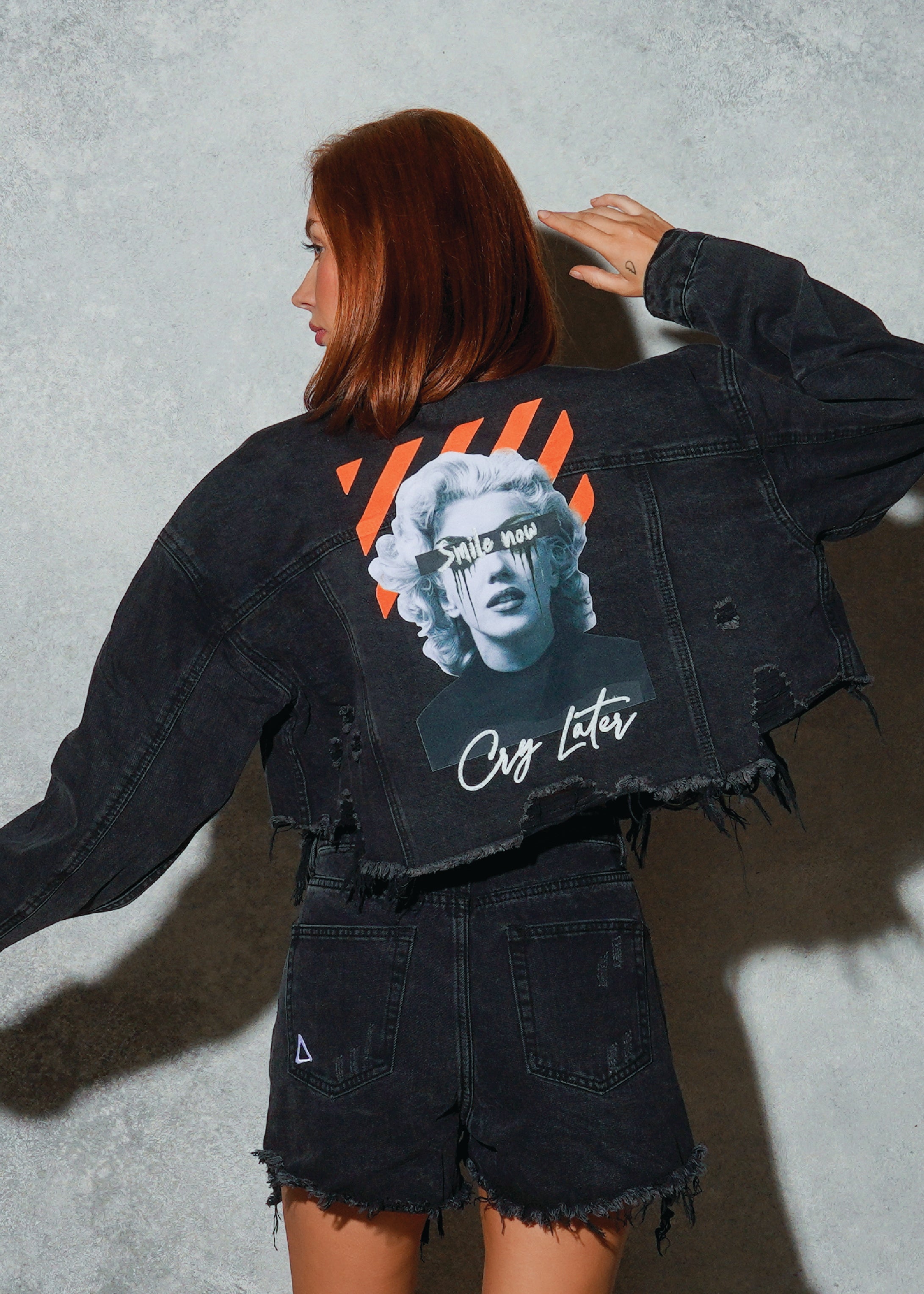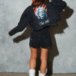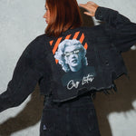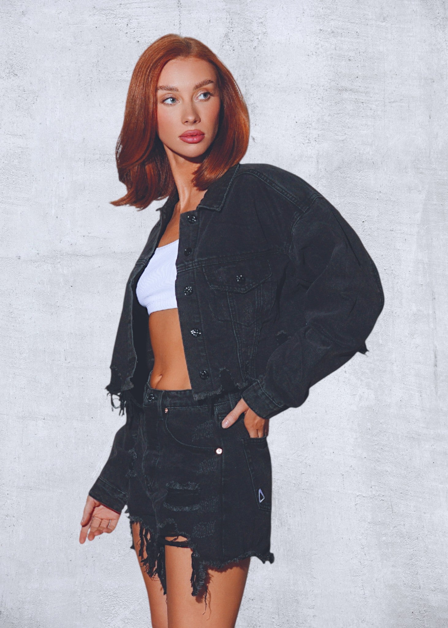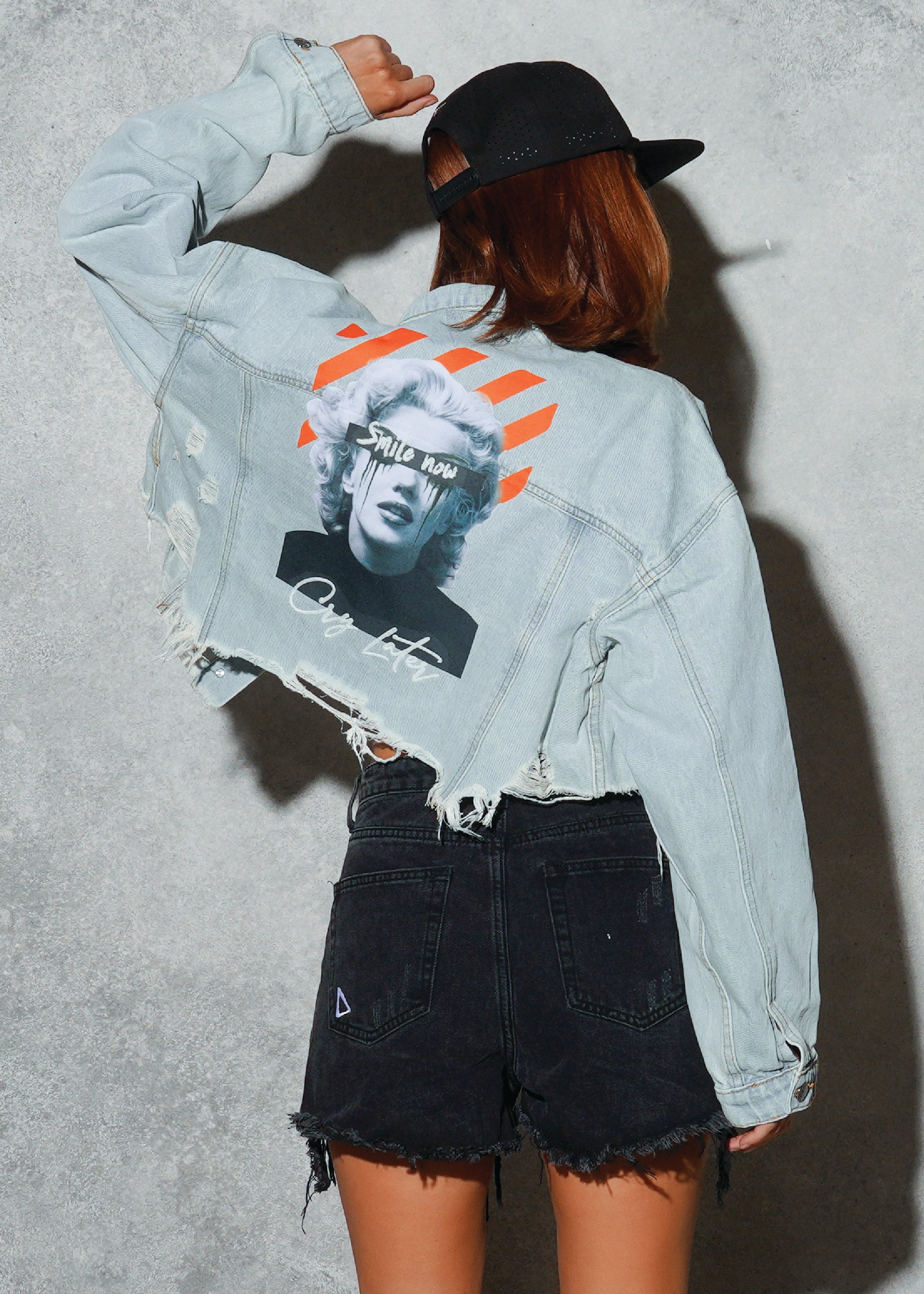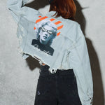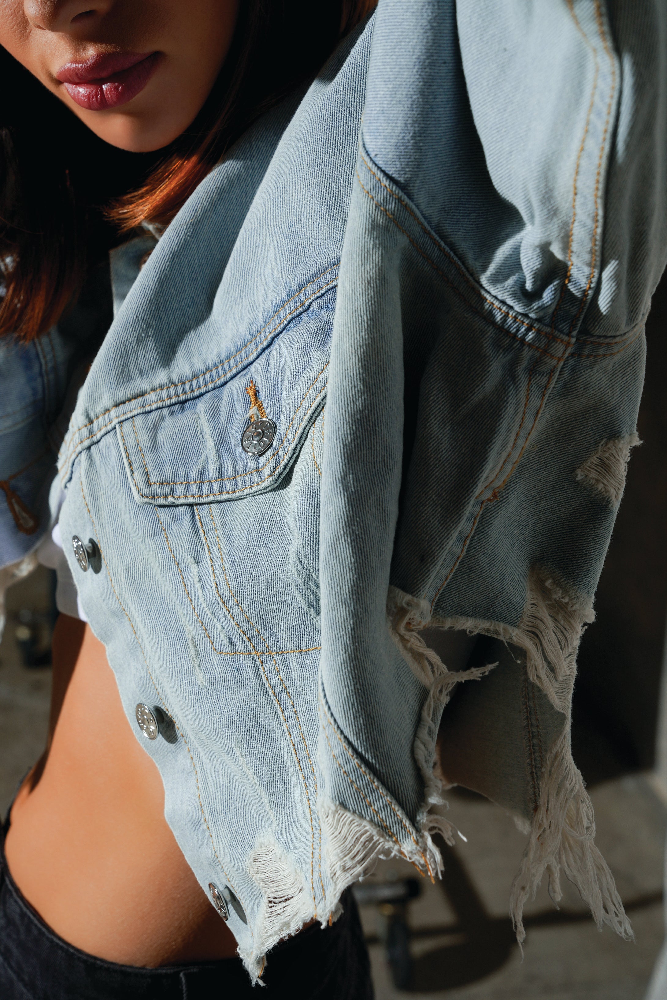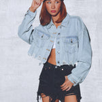 Cropped Distressed Denim Jacket, crafted distressed hemline,