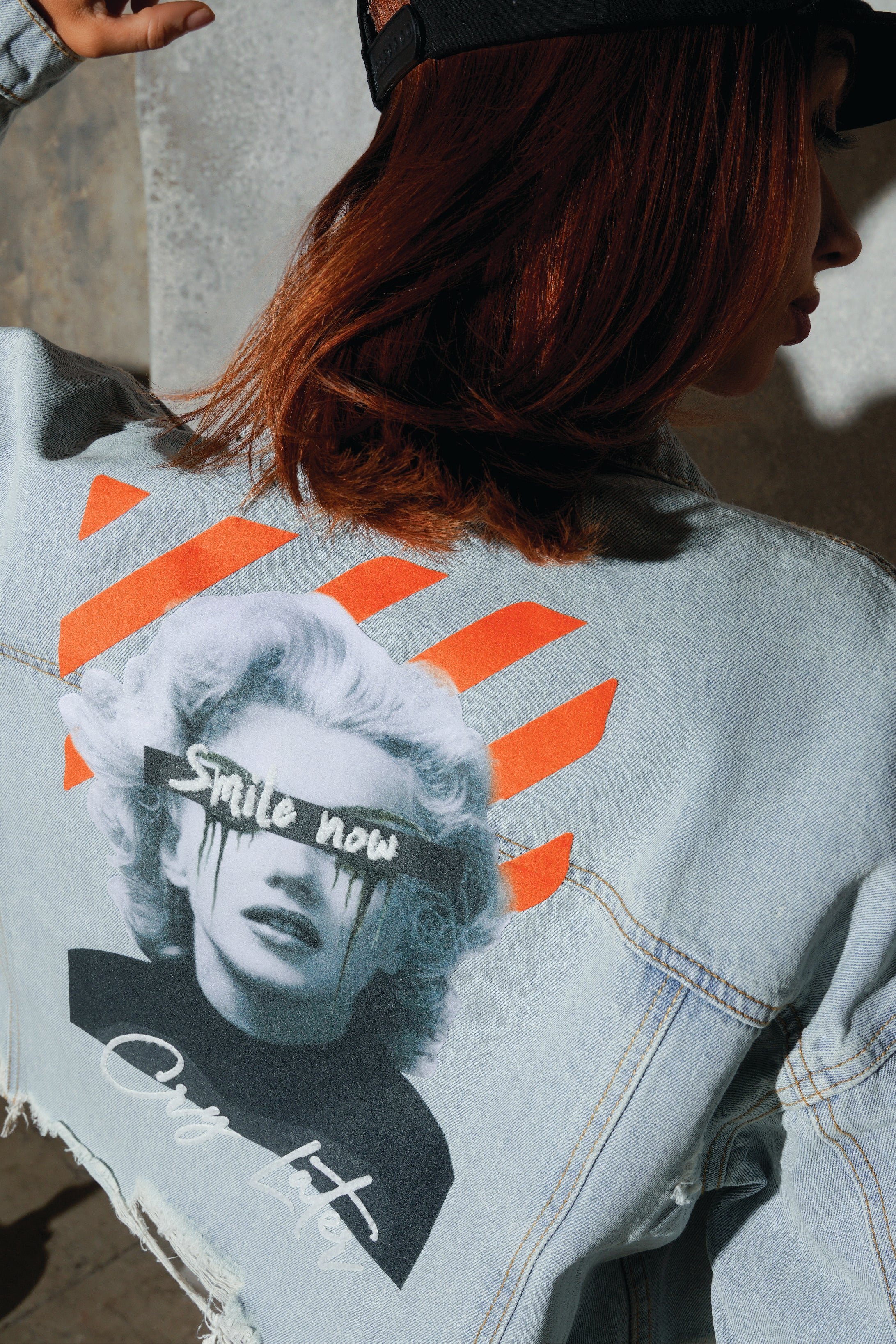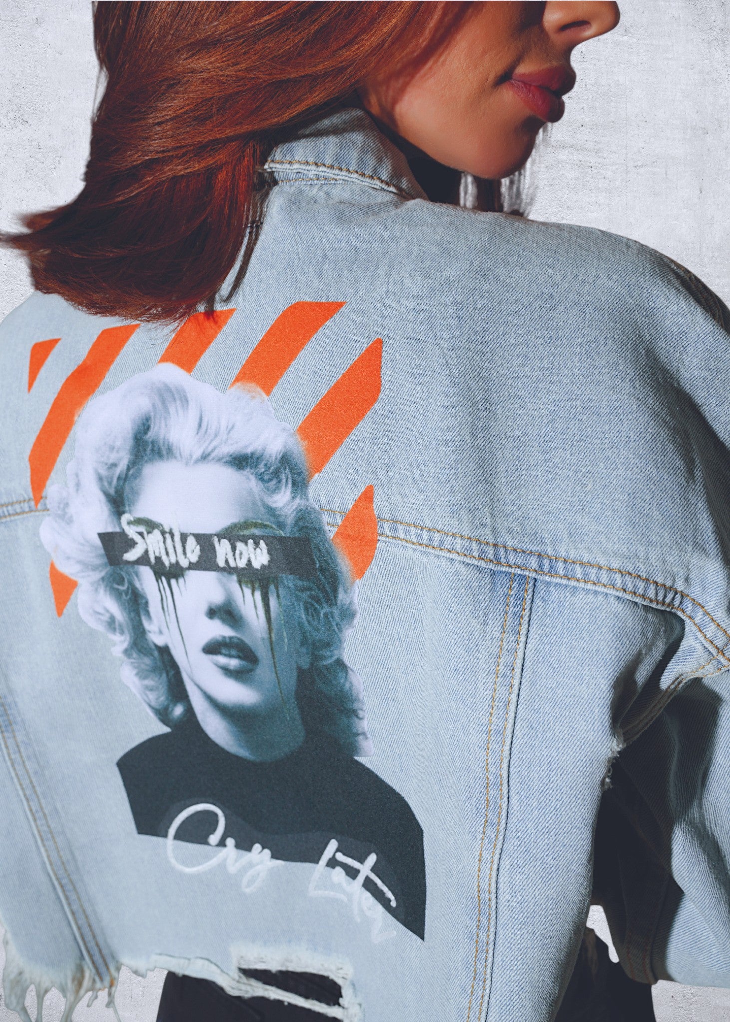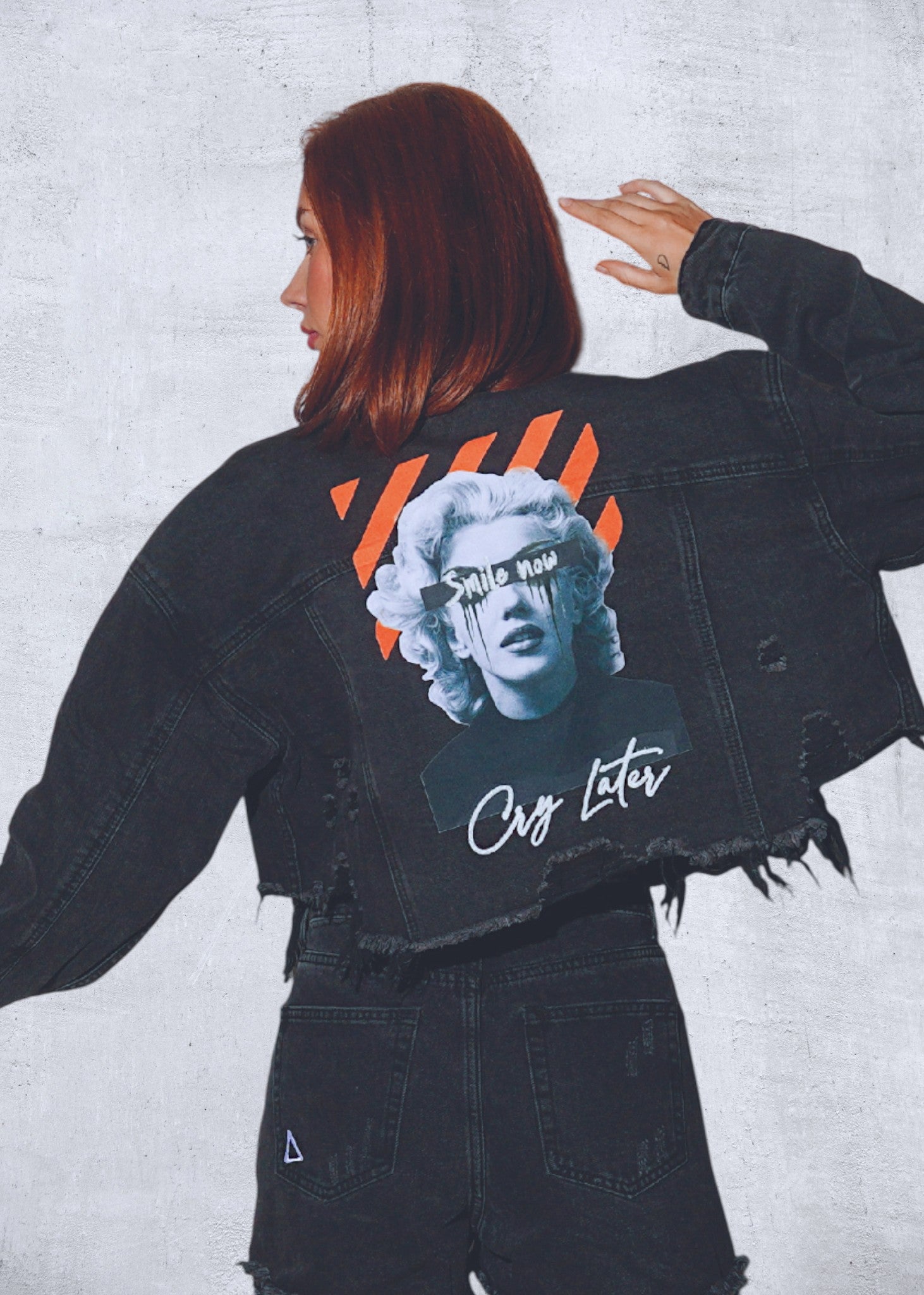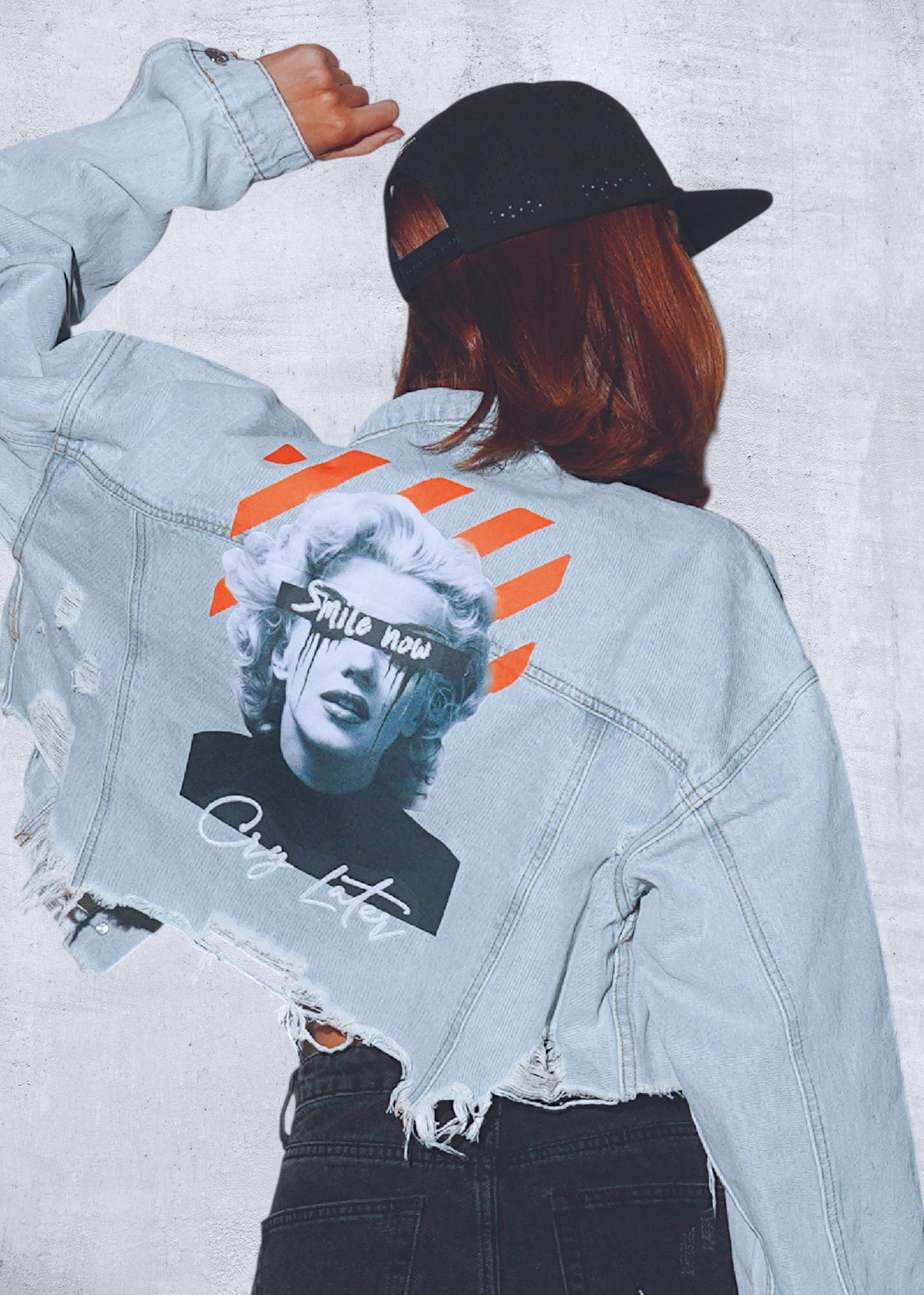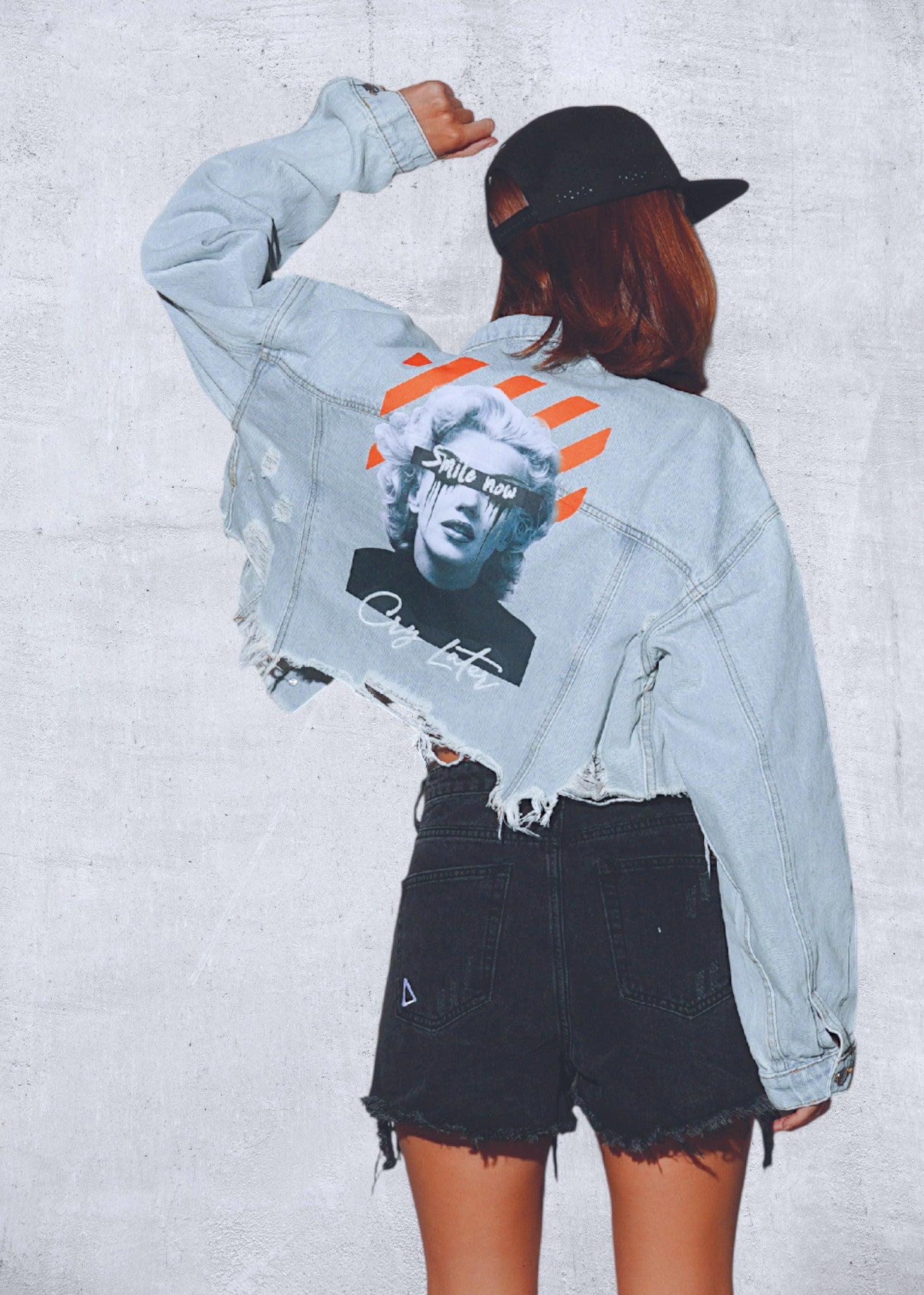 Cropped Distressed Denim Jacket, crafted distressed hemline,