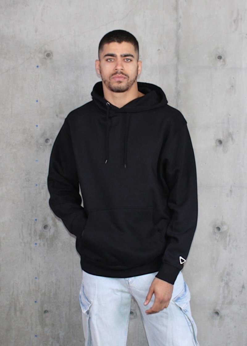 Classic mid-weight hoodie is spun from our premium 3-end fleece,