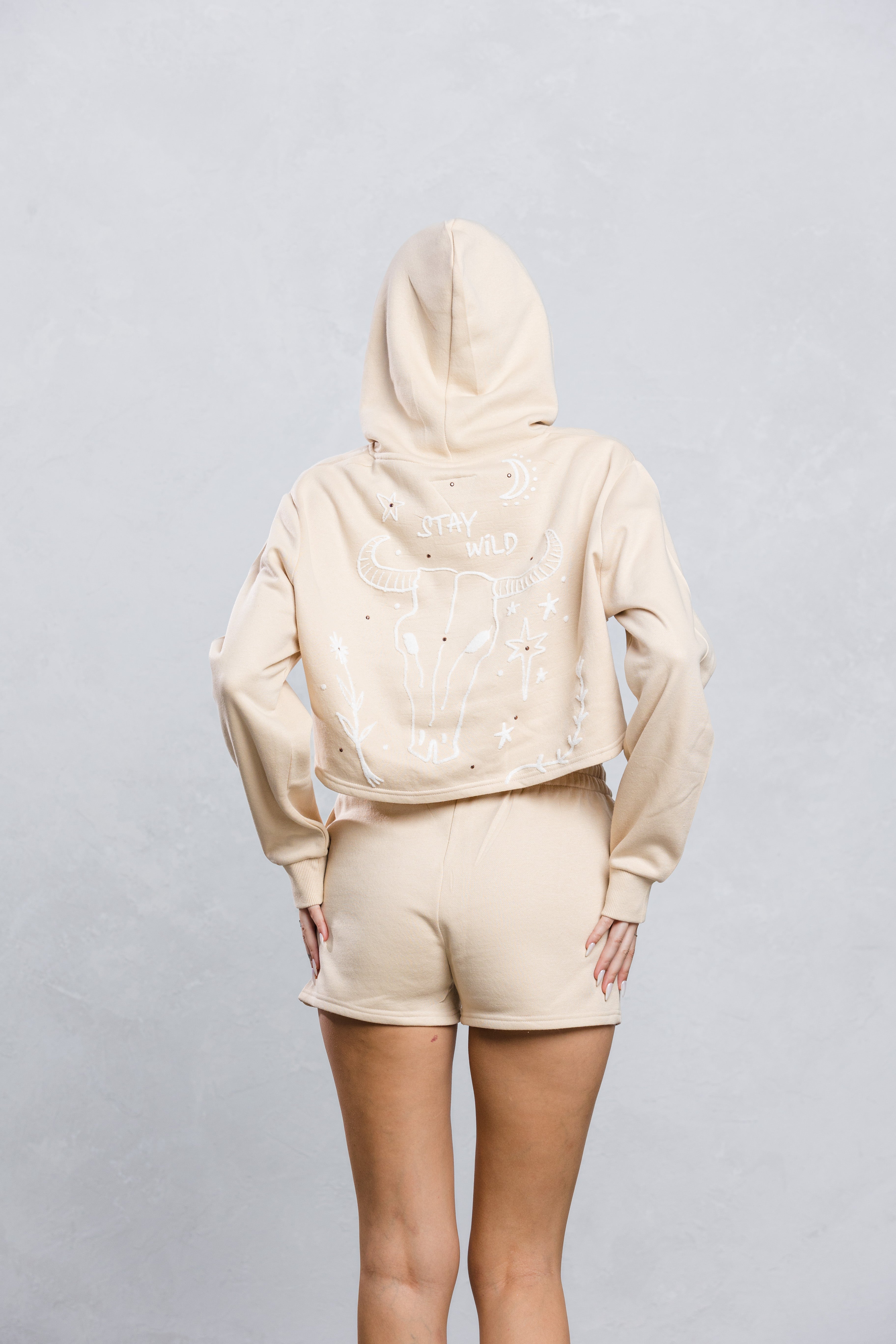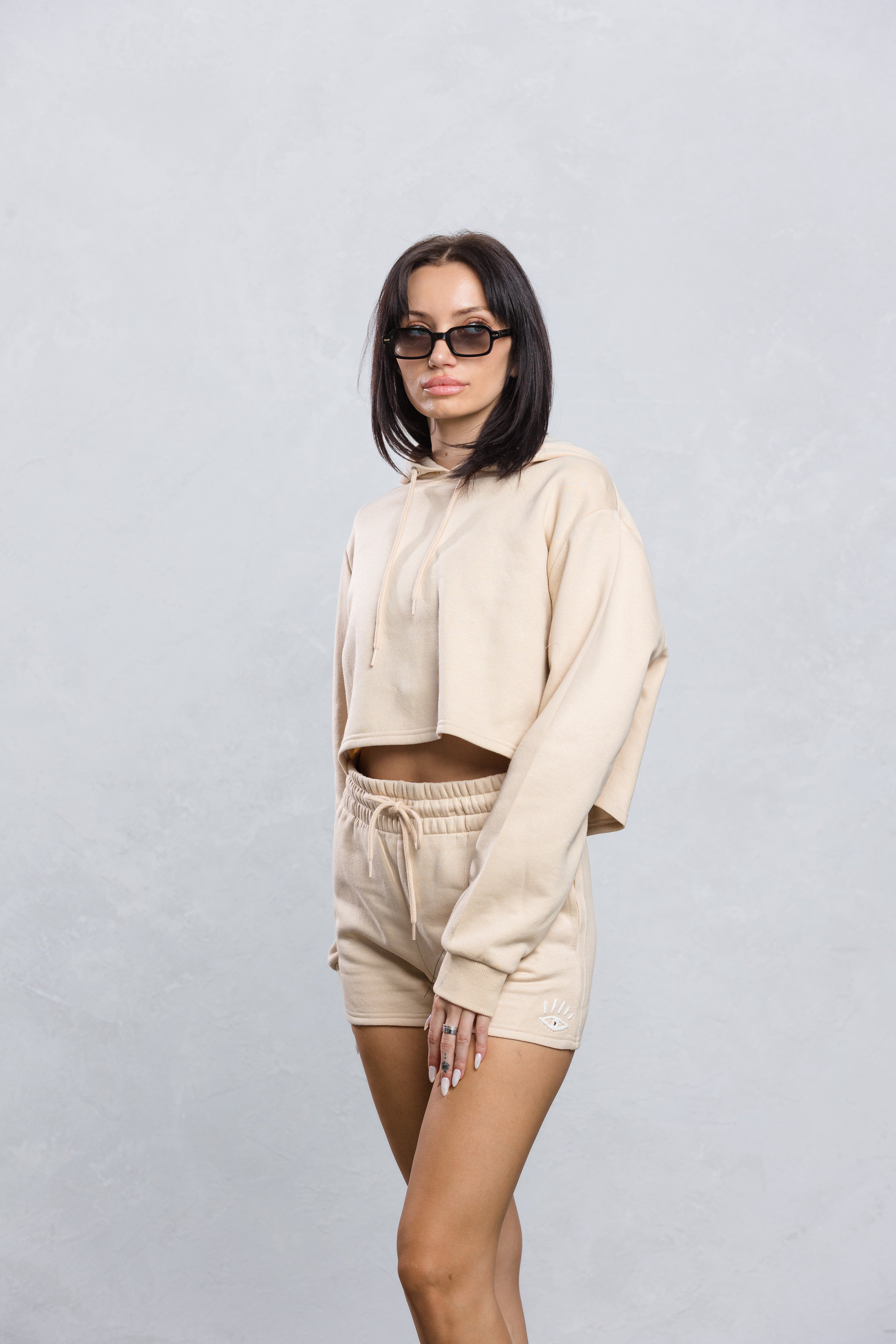 Fashionable Comfort: Achieve both fashion and comfort with this stylish cropped sweatsuit set.