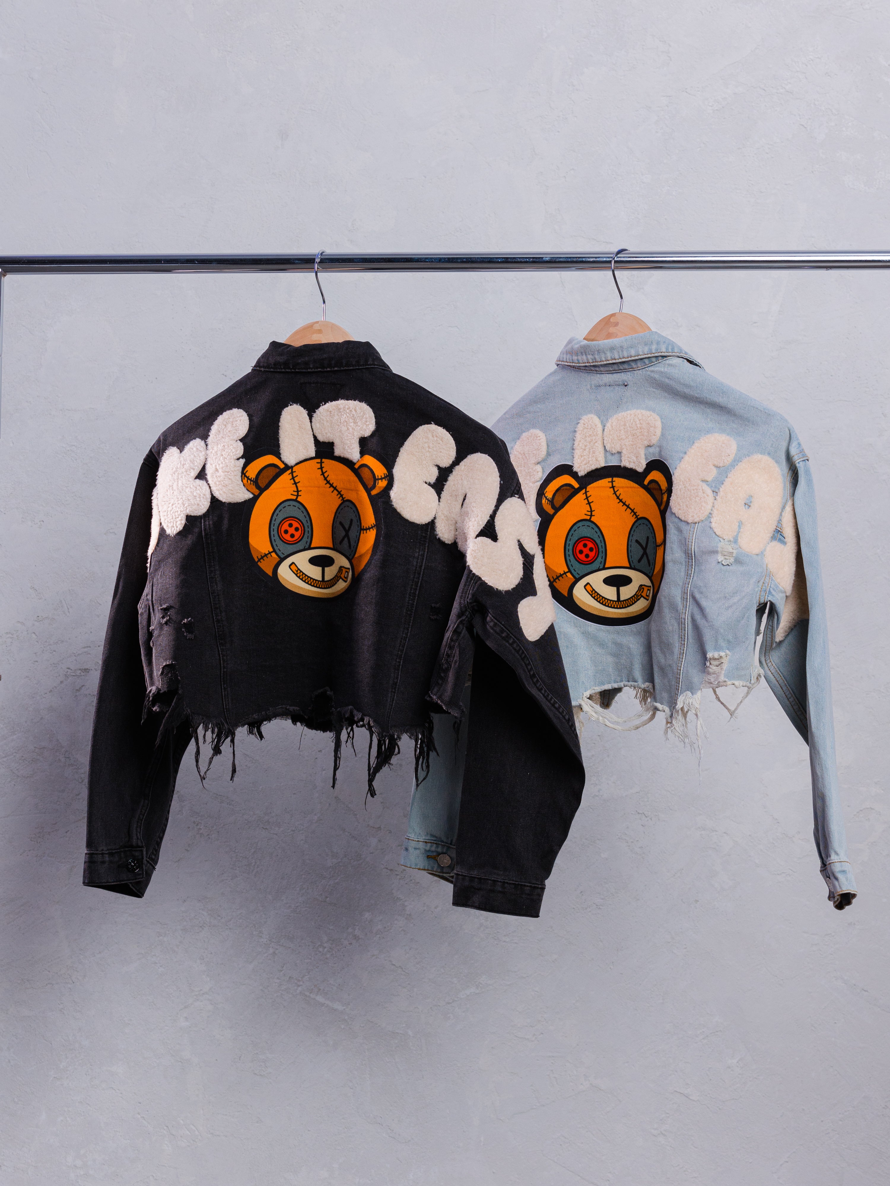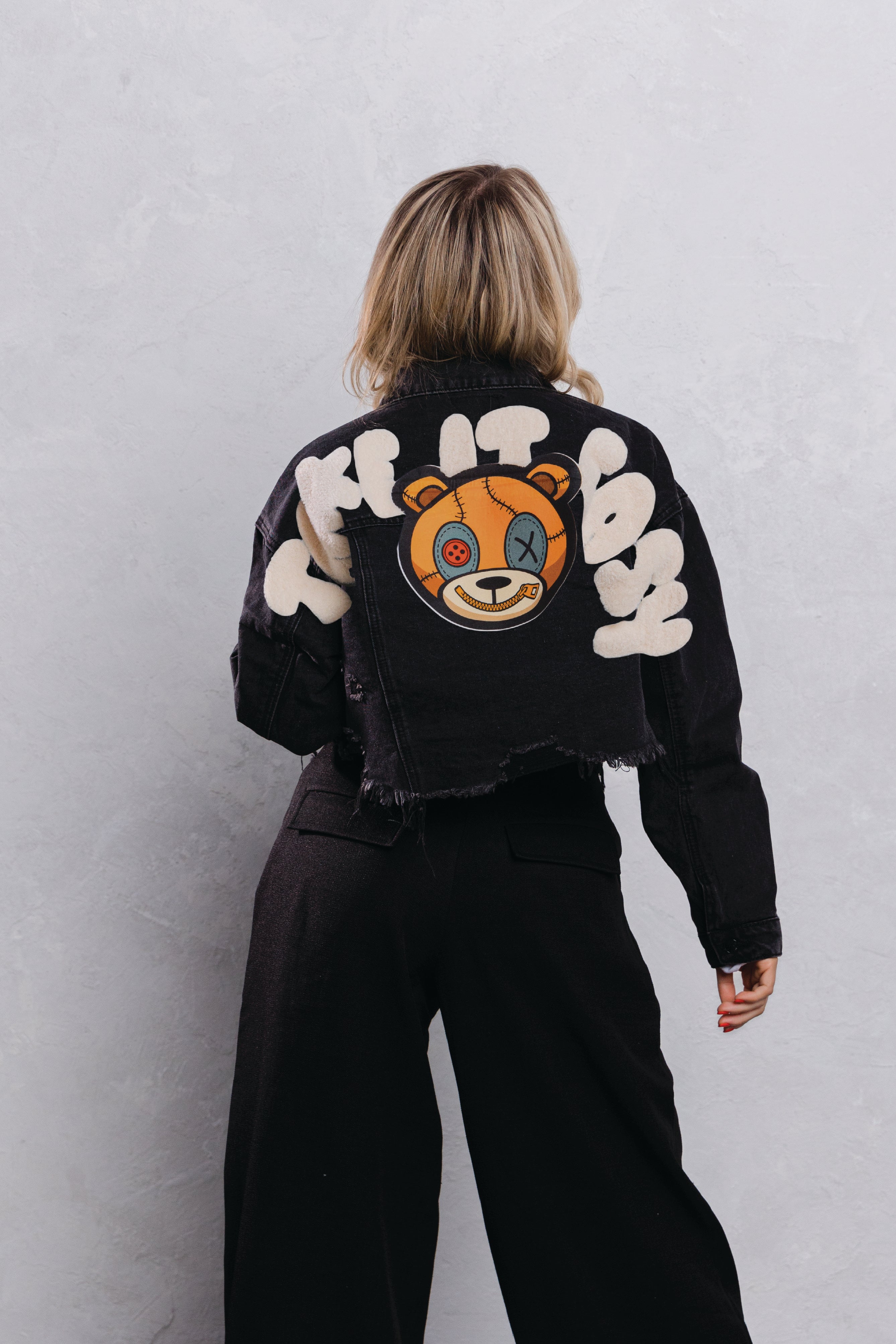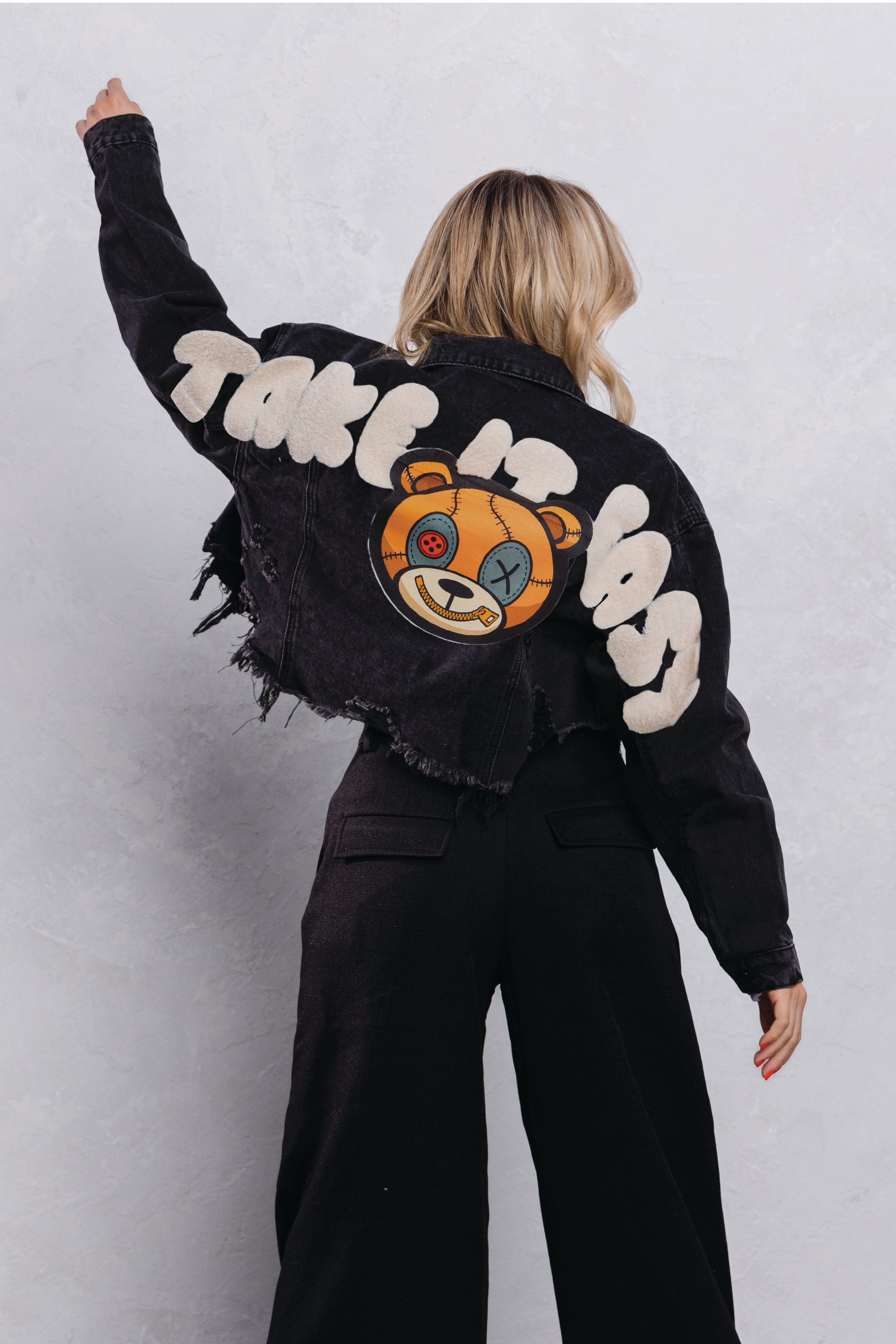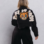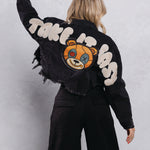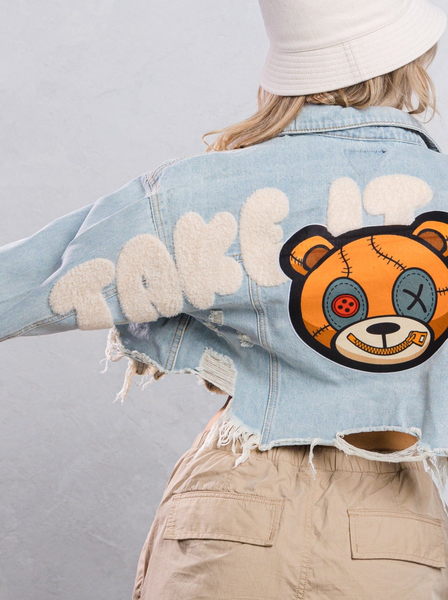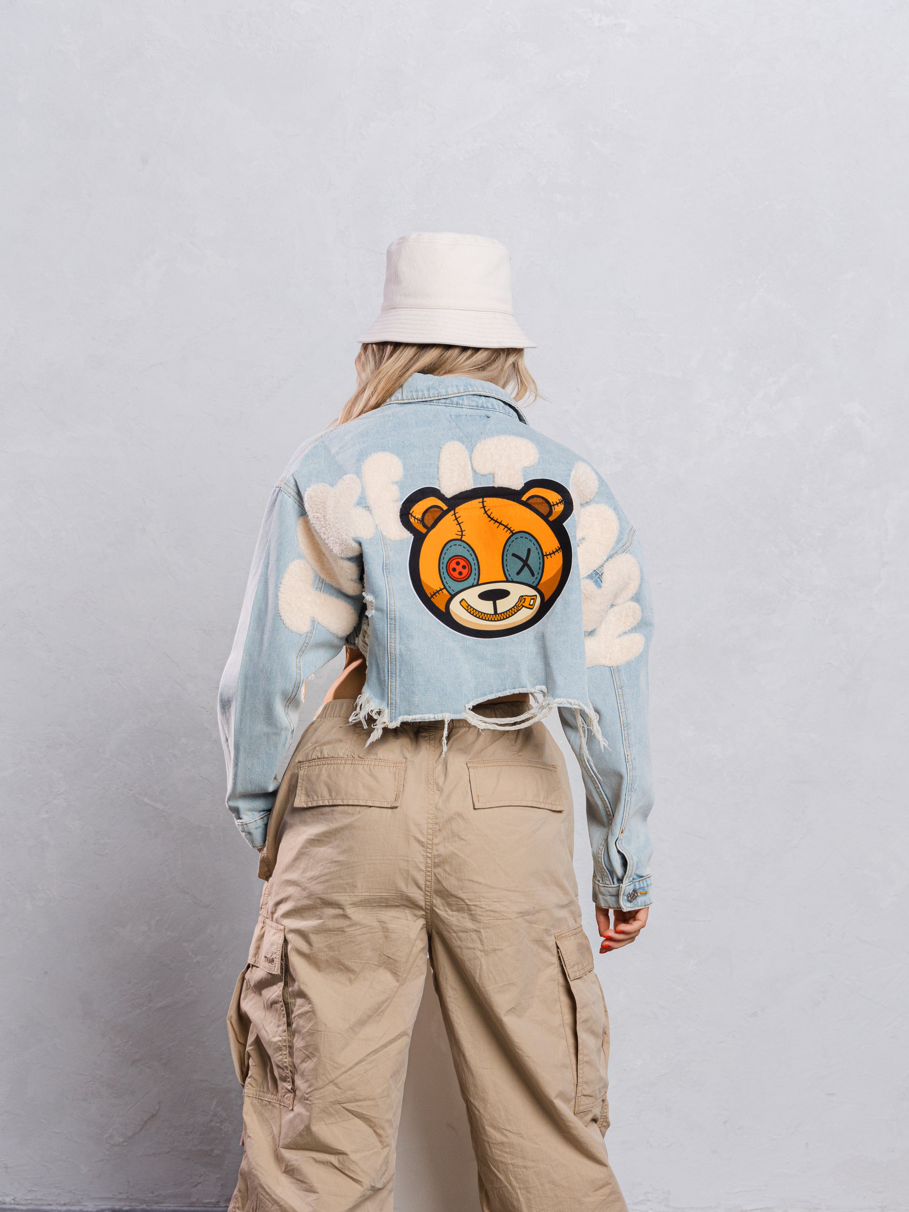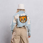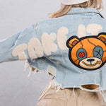 TAKE IT EASY teddy bear Crop Denim Jacket
