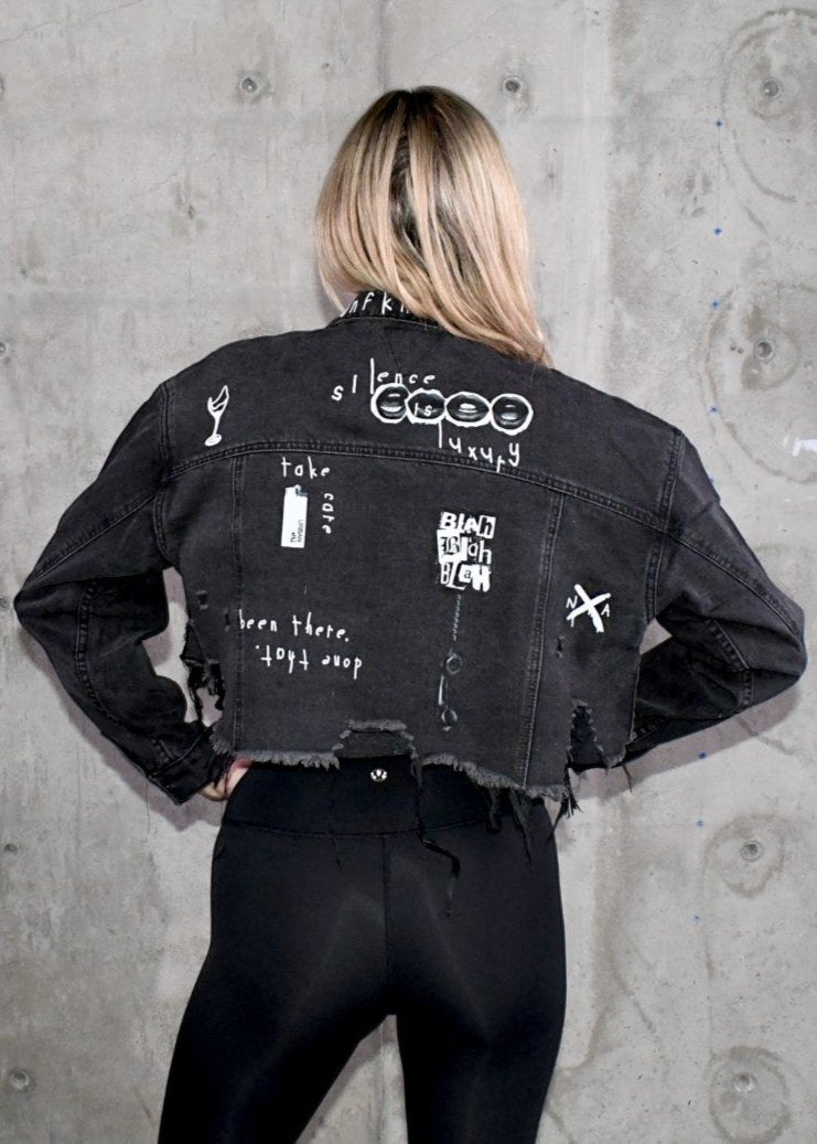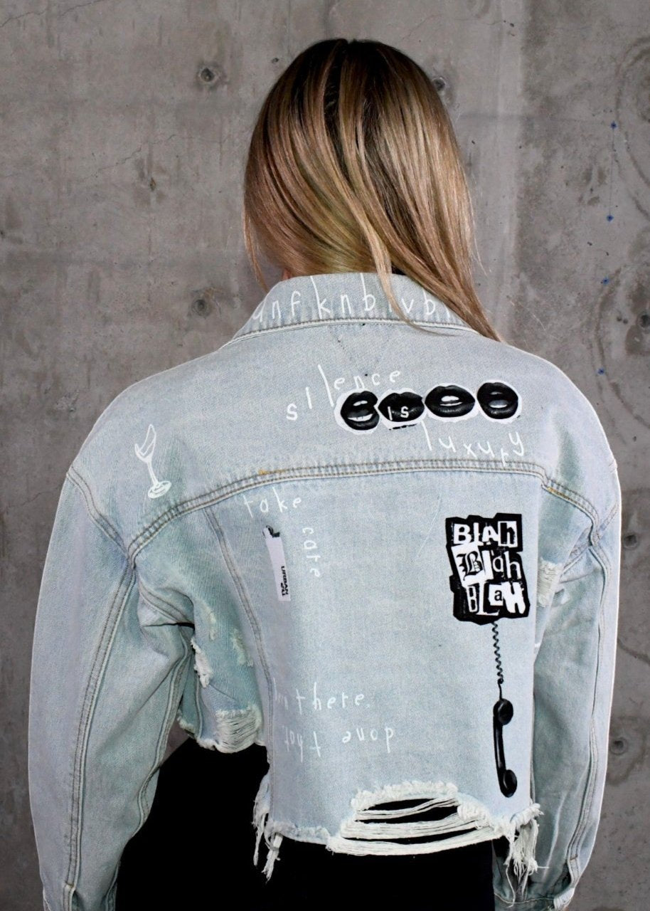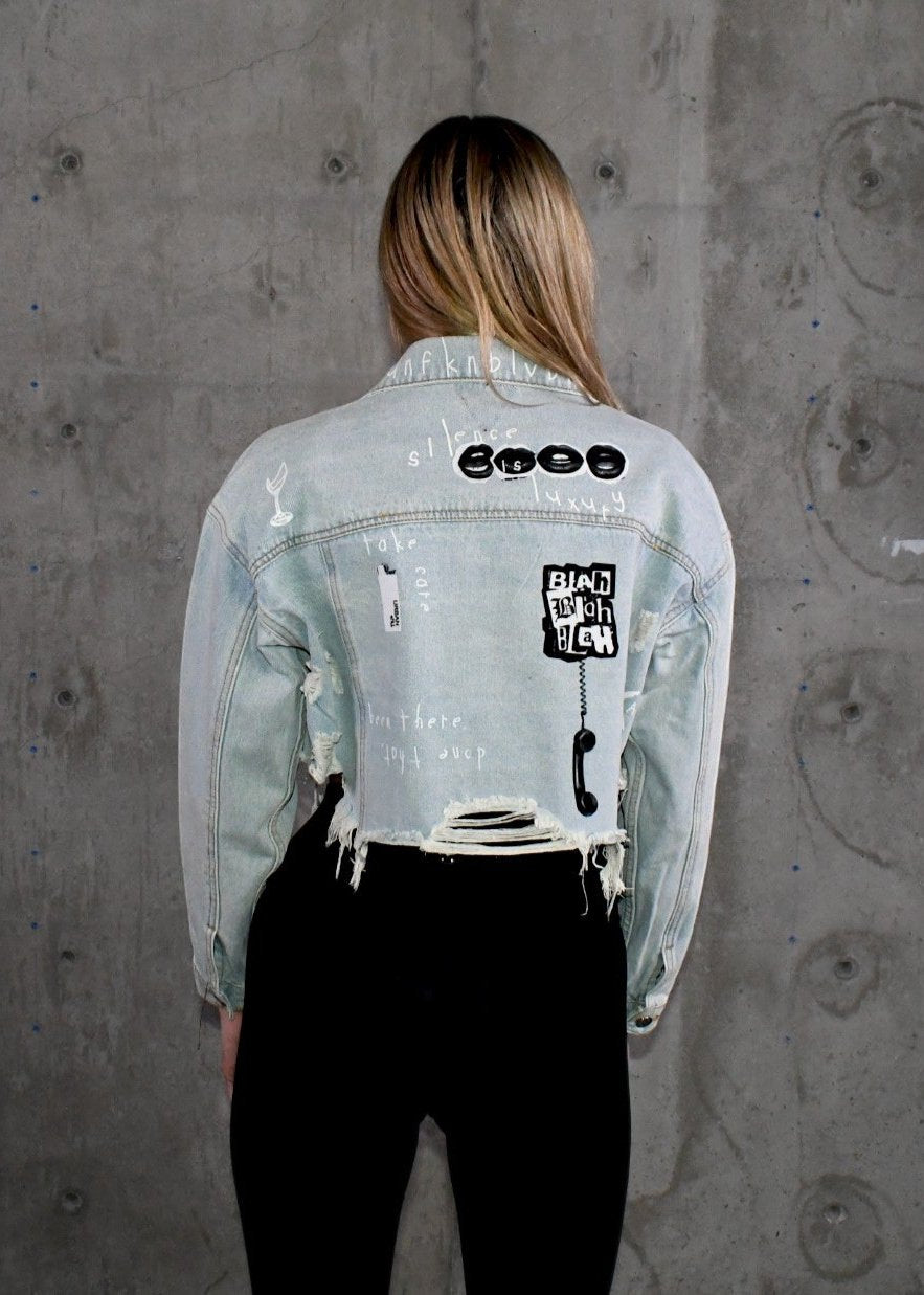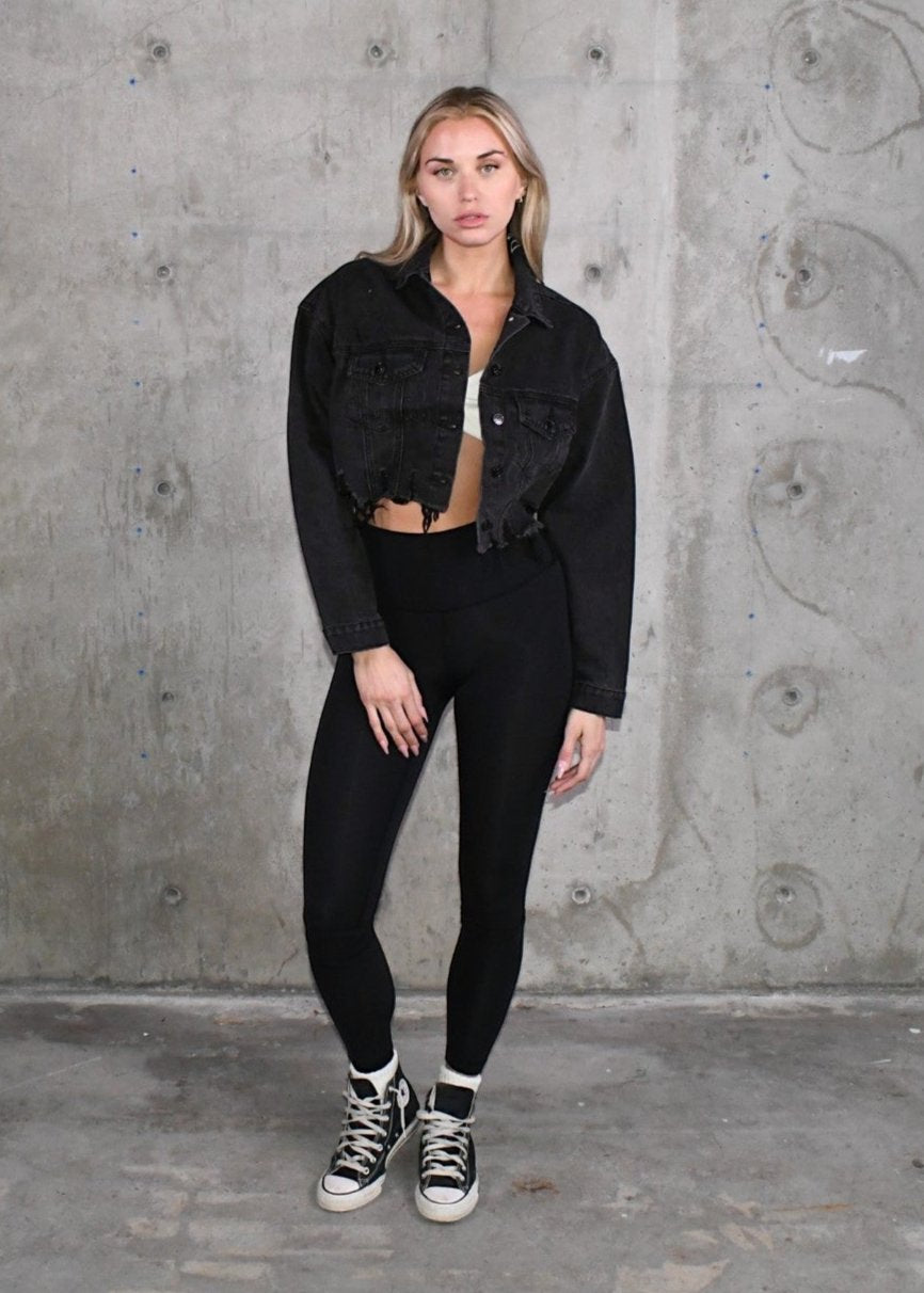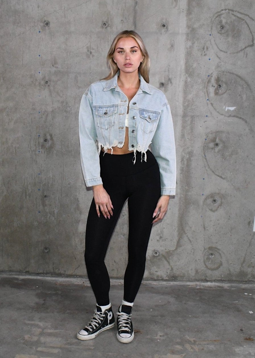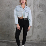 Cropped Distressed Denim Jacket, crafted distressed hemline,