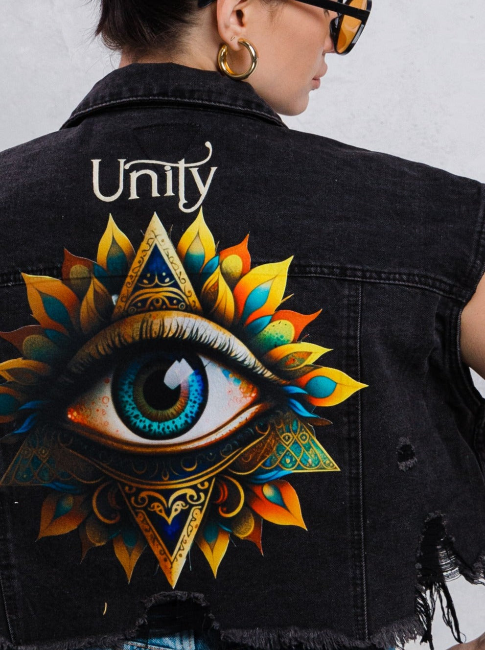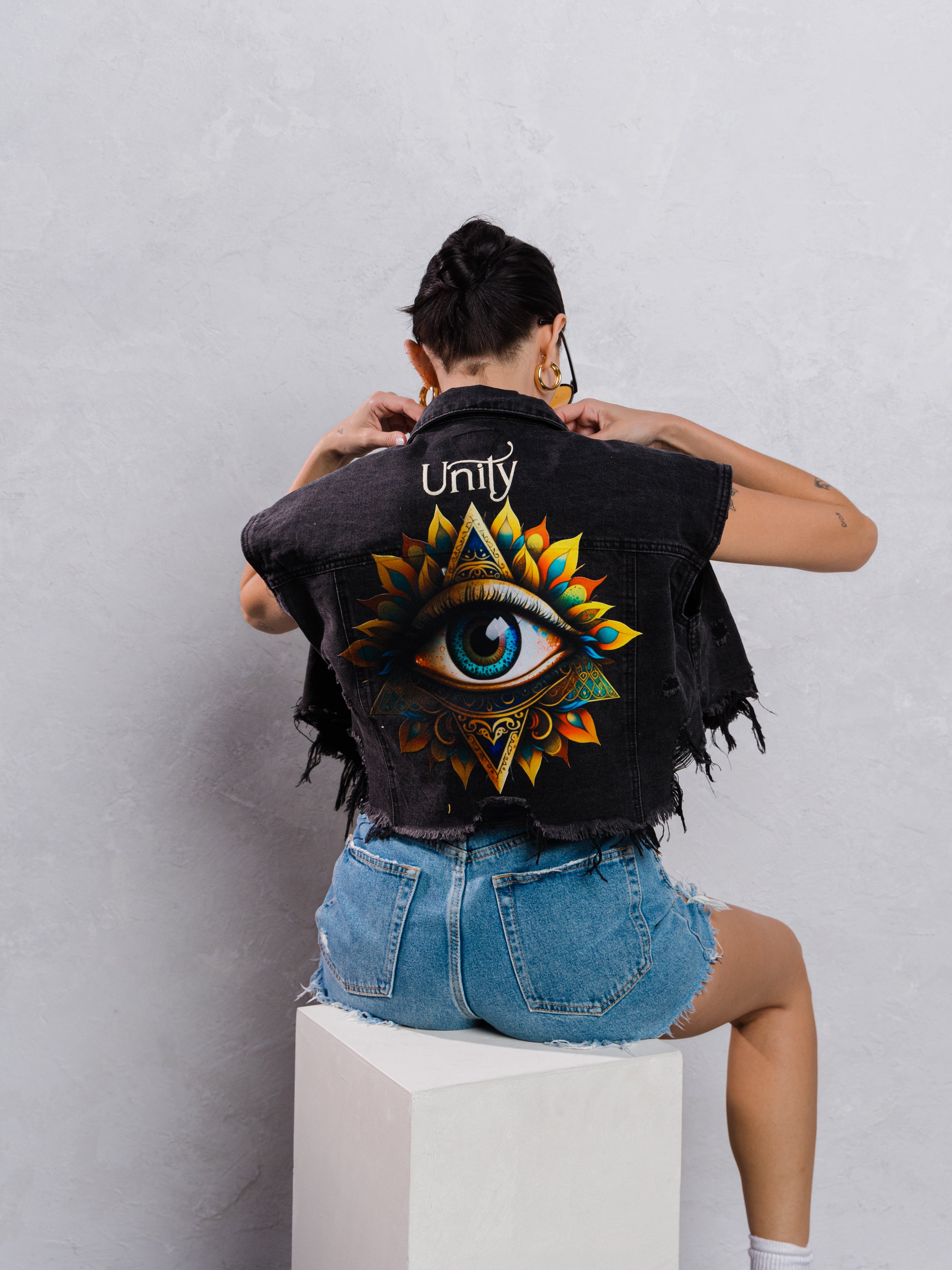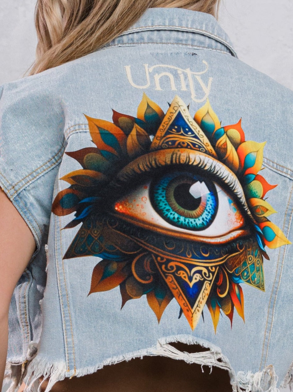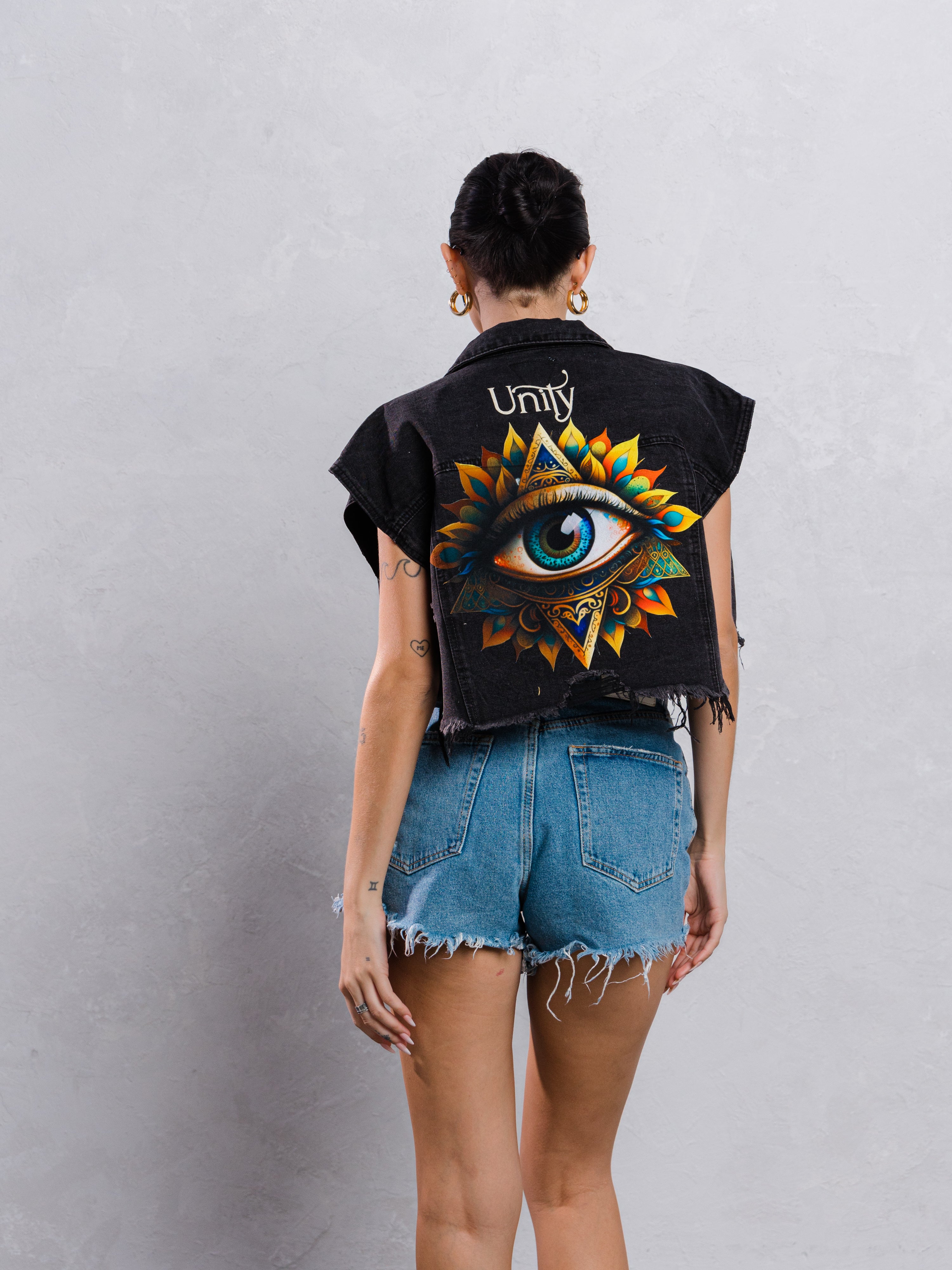 Cropped Distressed Denim Vest Jacket, crafted distressed hemline,